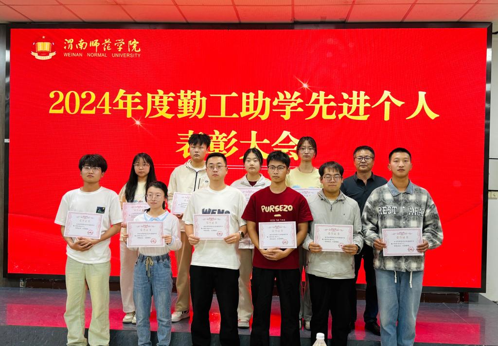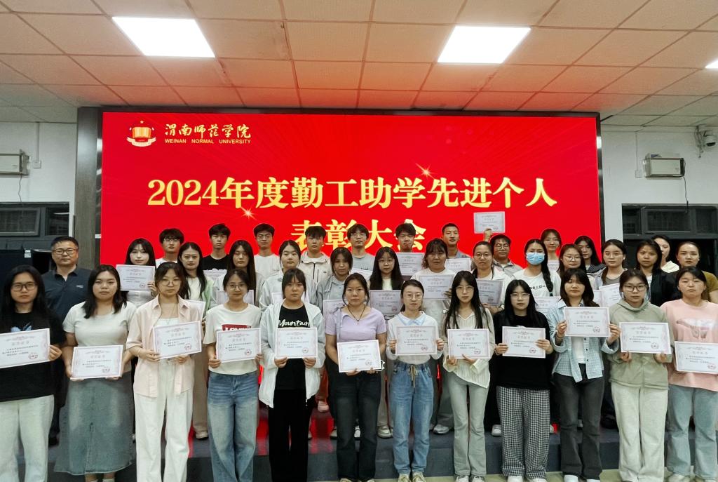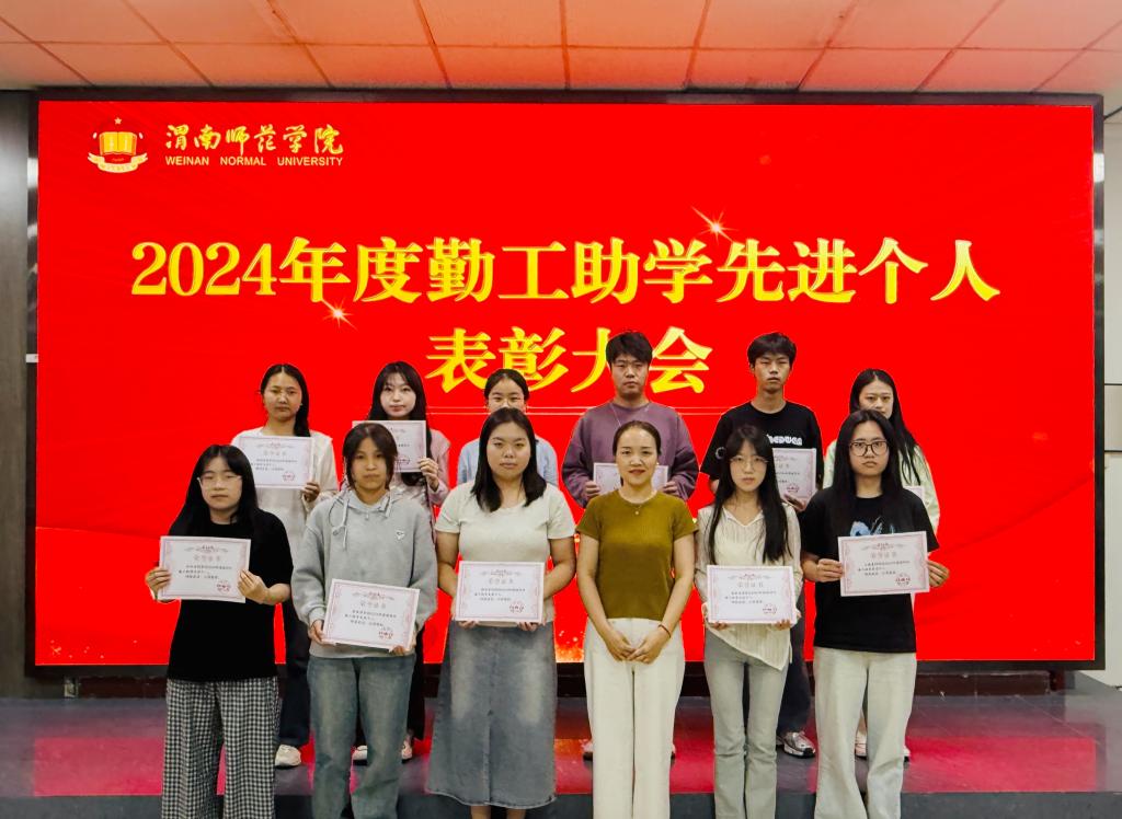 张小苗宣读了学校2024年度勤工助学先进个人表彰决定,与会老师为获奖学生颁发荣誉证书并合影留念。