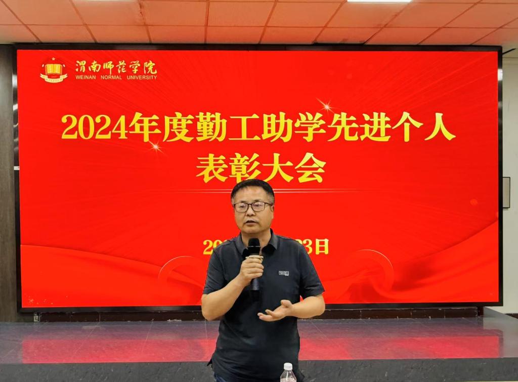 4月23日,学校举办2024年度勤工助学先进个人表彰大会。学工部副部长马耀斌、学生资助管理中心主任张小苗、受表彰学生及勤工助学学生代表参会,活动由俄语231班朱佳吟同学主持。