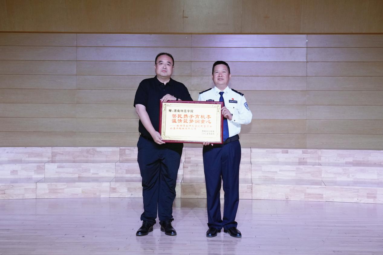 活动伊始,陈康表示,学校组织莫斯科艺术学院、体育学院、音乐学院、教育管理学院联合开展“警民一家亲,大手拉小手”校地公益服务计划圆满结束。感谢bat365正版唯一官网面向渭南市临渭区政法系统一线干警子女免费开设的9门课程和免费提供优质教师资源与实验室场地。他代表市公安局向学校赠予“警民携手育桃李 温情筑梦润童心——致谢bat365正版唯一官网民警子女公益兴趣班关怀之情”牌匾。象征着警校双方携手共进,情谊深厚的坚定决心。