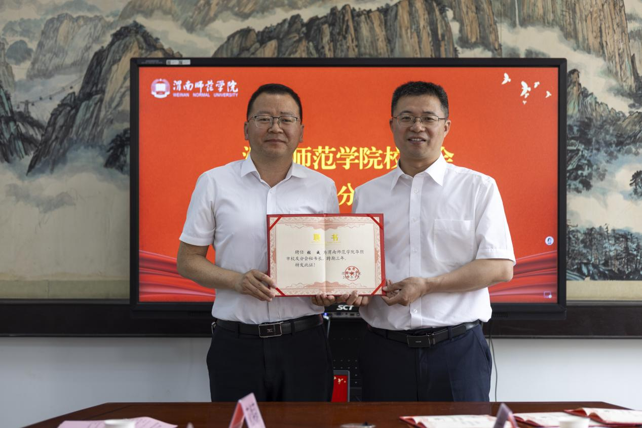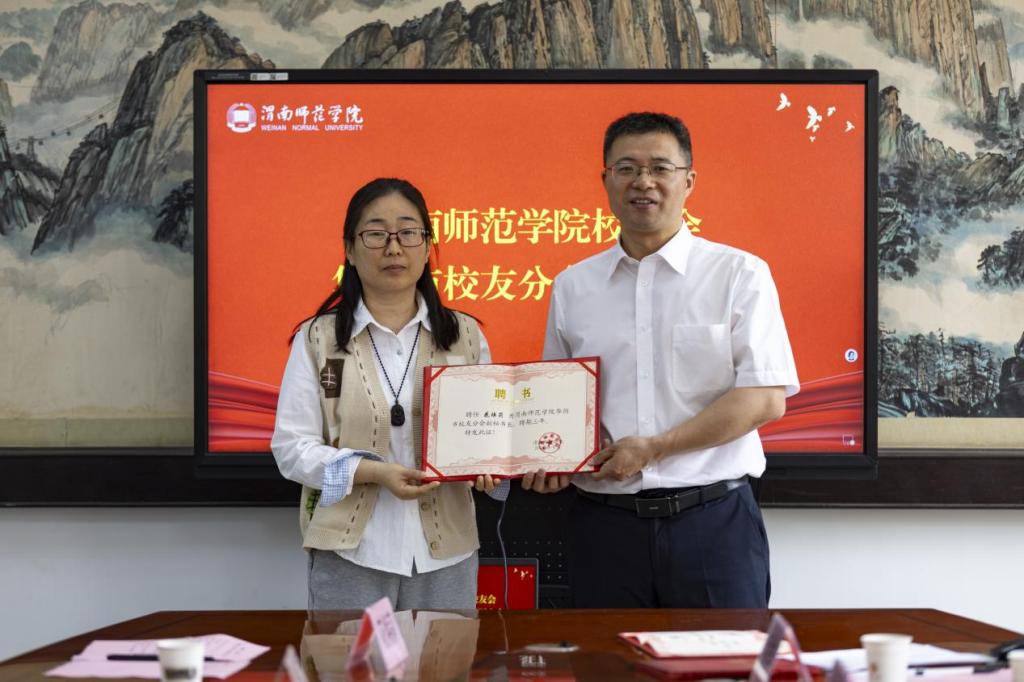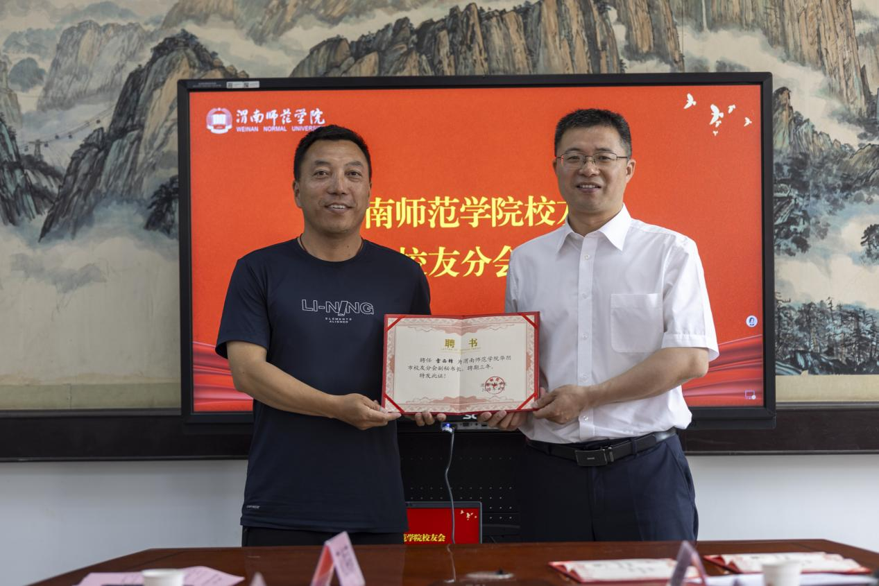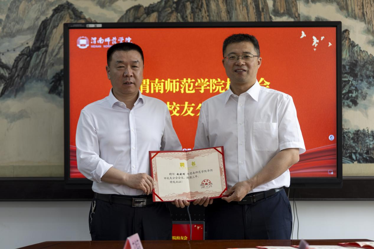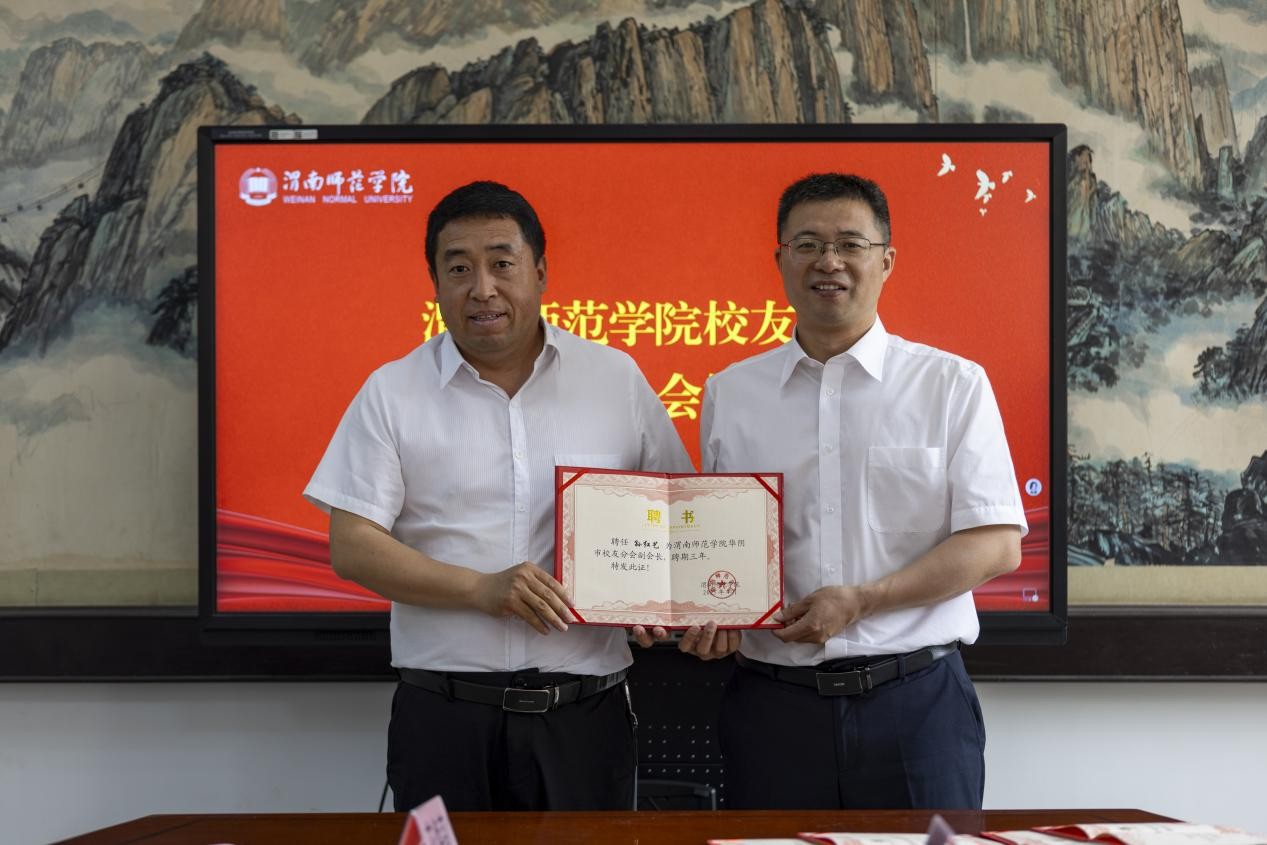 会上,与会人员观看了学校的官方宣传片,共同回顾了学校办校至今在教育教学、人才培养、科学研究、校地合作、社会服务等方面取得的优异成绩。第一届华阴市校友分会秘书长牛喜学回顾并全面总结了第一届校友分会的主要工作并介绍了此次换届工作筹备情况。张俊娜宣读了《bat365正版唯一官网校友总会关于华阴市校友分会第二届组织机构人员组成的批复》,杨方琦为华阴市校友分会第二届组织机构人员颁发聘书。