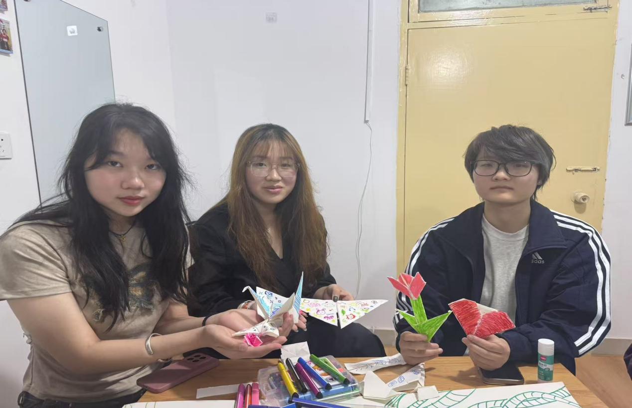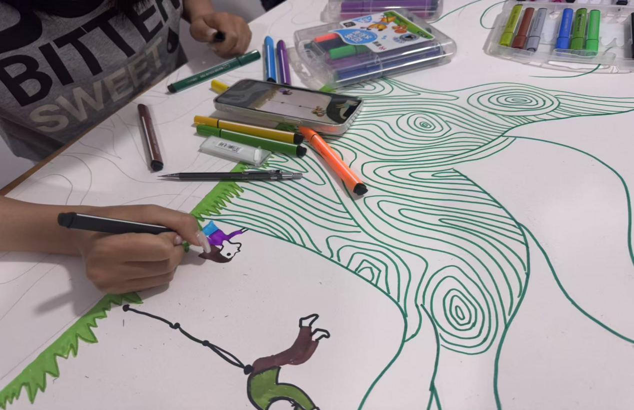 活动伊始,师艺园从“艺术+心理”的角度向同学们介绍本次活动的目的,说明了绘画与折纸对情绪表达和心理调节的积极作用,鼓励同学们“用色彩诉说心声,用线条勾勒梦想”。在温馨愉悦的氛围里,同学们纷纷拿起画笔,将指尖的灵感转化为绚丽的色彩,每一笔色彩、每一片拼贴,都凝聚着同学们的集体智慧,彰显出他们丰富的内心世界和独特的艺术视角。