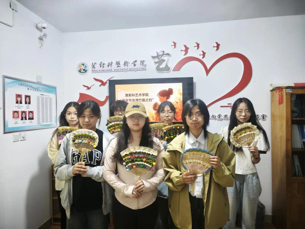 5月11日,莫斯科艺术学院在学校、学院“一站式”辅导员工作站同时开展"制扇寄情,感恩母爱"非遗竹扇主题活动,学院党总支副书记叶晓燕、学工办副主任段菲、全体辅导员及部分省外学生40余人参与,在传统工艺的魅力中传递对母亲的感恩之情。