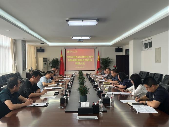 5月14日,西北农林科技大学后勤管理服务处副处长卿明华一行7人来bat365官网调研交流。bat365官网后勤服务中心主任王争辉、副主任张菊红、副主任穆峰,能源动力科科长韩彦军、公寓科科长张虎,资产经营公司副总经理刘杨志陪同调研并参加交流。
