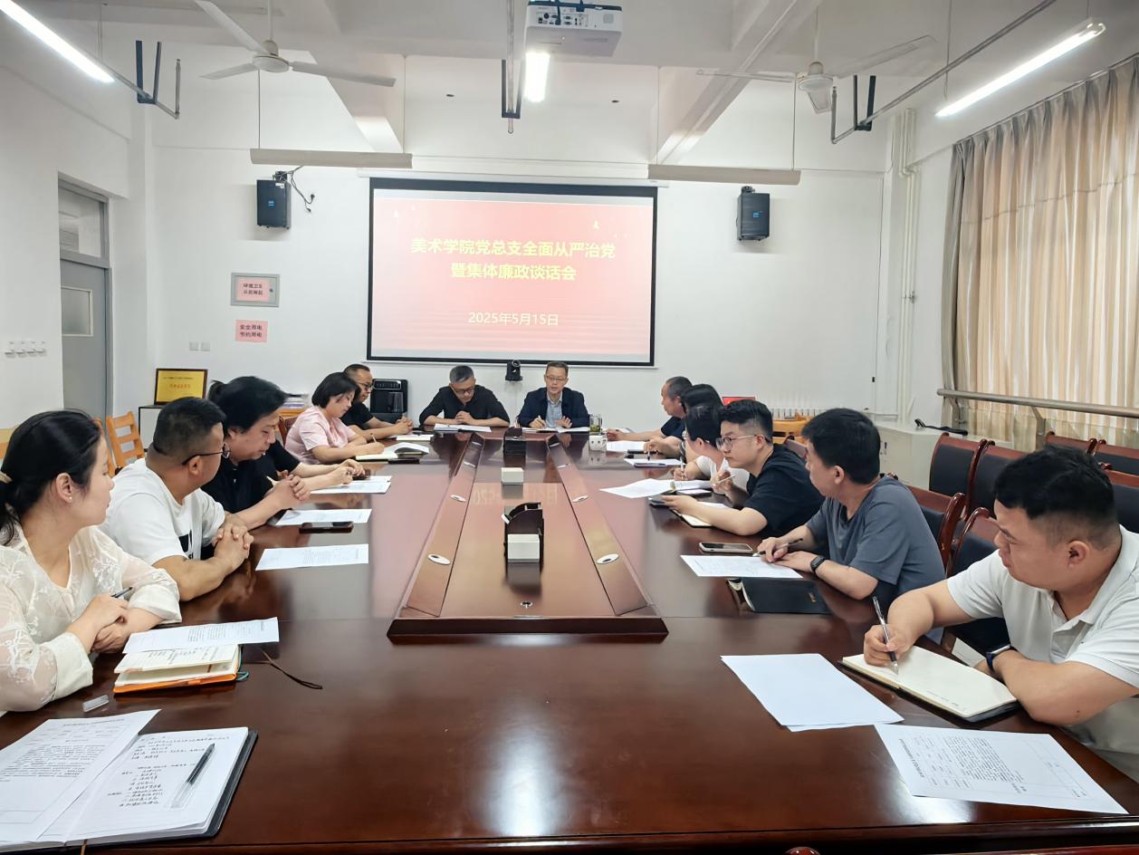 5月15日下午,美术学院党总支召开全面从严治党暨集体廉政谈话会。学院处科干部、系主任、专业负责人及全体辅导员参加会议,会议由党总支书记周德锋主持。