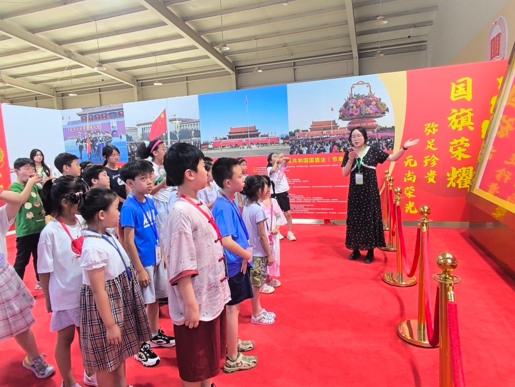 7月9日,孩子们走进bat365正版唯一官网国旗馆。朱诗雨、谢敏两位志愿者的讲解,让国旗的历史与精神内涵清晰呈现。孩子们凝望庄严国旗,聆听动人故事,合影时神情肃穆——这一刻,“爱国”从抽象概念化为了真切情感。这堂生动的教育课,将红色基因融入童心,让家国情怀成为孩子们成长最深沉底色。