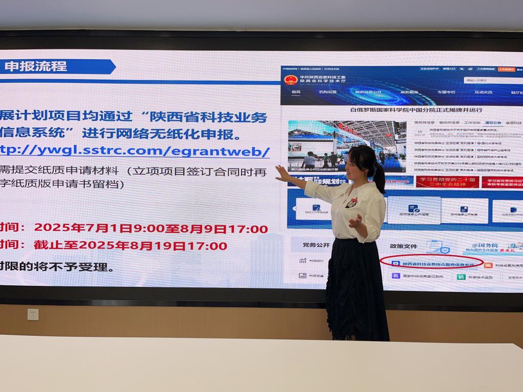 上午活动中,阴国富对暑期科研项目申报工作进行全面安排,明确了工作重点和时间节点。刘静教授就陕西省科技厅科研项目和渭南市科技计划项目的申报流程、限项要求、申报要求及形式审查方面进行了详细解读。