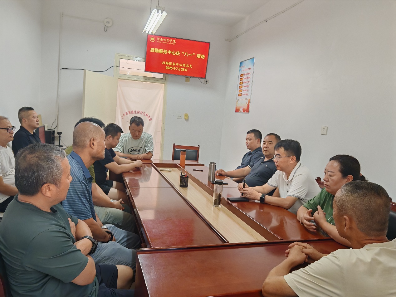 7月28日上午,在中国人民解放军建军98周年之际,后勤服务中心以纪念中国人民抗日战争暨世界反法西斯战争胜利80周年主题,举行庆“八一”建军节特色党日活动,后勤服务中心党员干部及在职退役军人参加活动。