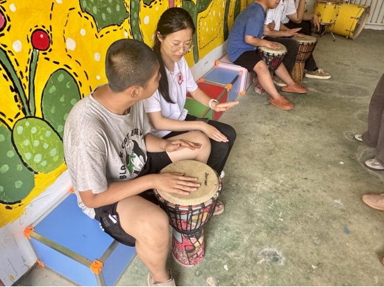 团队在课程设计上力求精准务实。依托“丝路艺创”辅导员工作室,深入调研特殊儿童需求,反复打磨课程体系。针对特殊儿童的心理特点和成长需求,研发出音乐疗法、非遗体验、情景模拟等特色课程,如将《虫儿飞》歌曲与手势舞创新融合,让孩子们在艺术中感受温暖;设计“情景模拟小卖部”课程,帮助孩子们掌握基础生活技能。每一门课程都经过团队多次研讨优化,确保贴合实际、富有实效,避免形式主义,真正做到为特殊儿童成长助力。