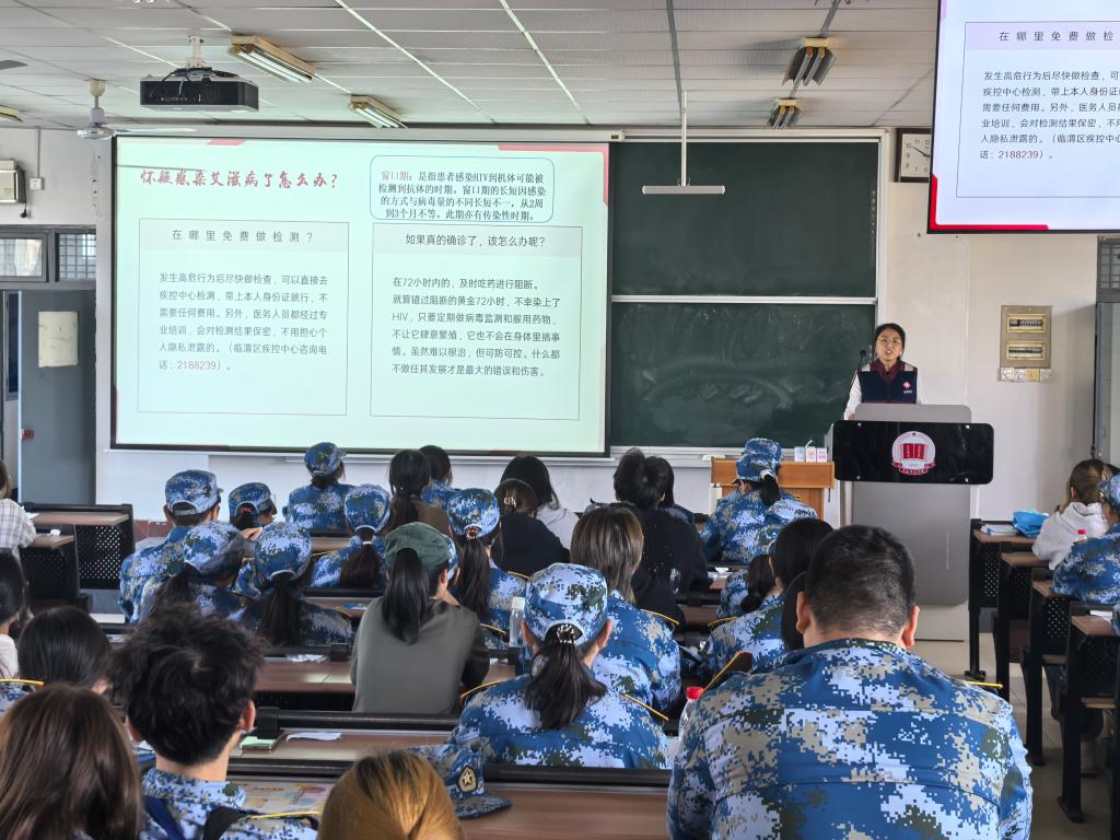 9月25日下午,附属医院特联合渭南市临渭区疾控中心专业宣讲团队在朝阳校区1201教室成功举办了2025级新生结核病与艾滋病防治知识健康教育讲座活动。