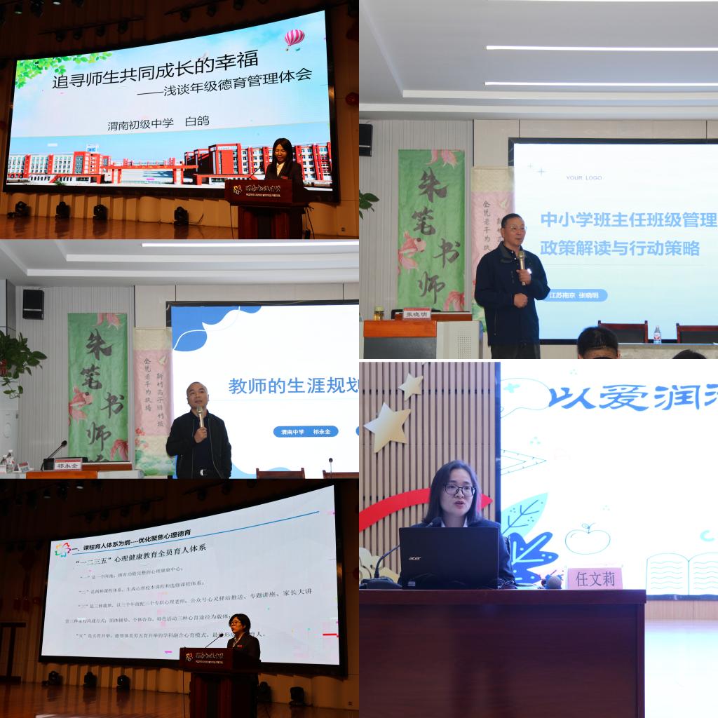 本次培训以“新时代育人视域下初中班主任综合管理能力提升”为主题,特邀多位省内外专家授课,包括南京市江宁教师发展中心教研员、陕西省魅力班主任等资深人士。课程内容聚焦班主任专业发展路径,从管理理念更新、政策策略解读入手,系统讲授师生有效沟通技巧与青少年心理疏导策略,并深入探讨教育家型班主任的成长路径。系列专题讲座内容翔实、案例生动,贴近班主任工作实际。