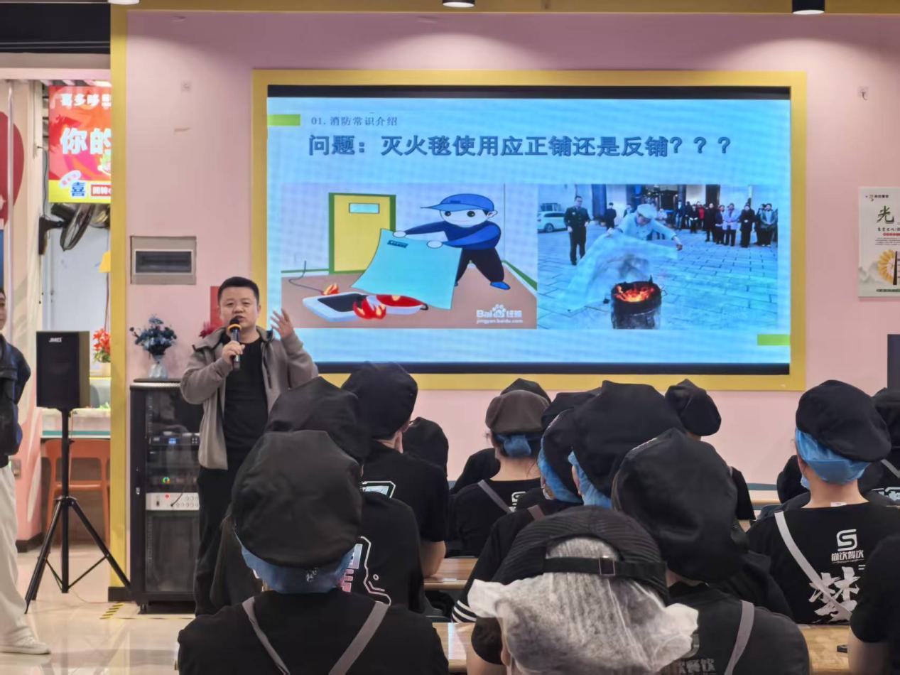 饮食管理科负责人王文亮在总结发言中强调,校园餐饮安全是后勤服务保障的“生命线”,任何环节都不容疏忽。他指出,食堂作为师生聚集的重点场所,必须以“隐患即事故”的底线思维,一旦发生火情极易造成严重后果,全体从业人员须将安全操作流程内化为职业习惯。他表示不仅要掌握火灾防控的关键要点,更要提升应急处置的实操能力,希望大家将所学知识严格应用到实际工作中,坚决杜绝麻痹思想与侥幸心理。