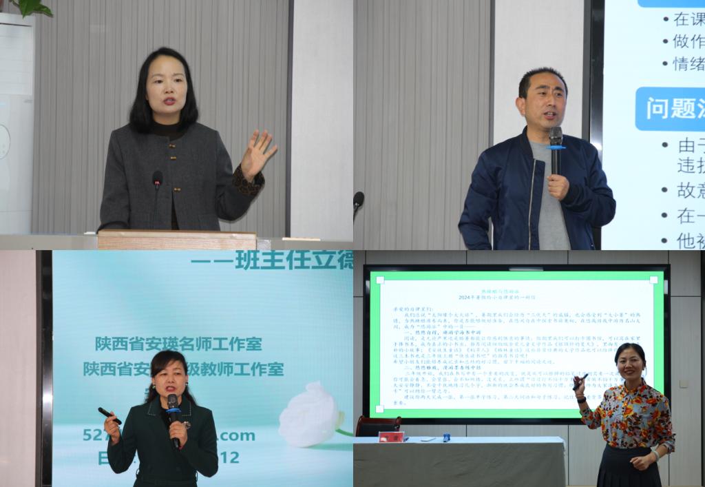 本次培训聚焦“践行师德、学会教育、学会育人、学会发展”四大模块,特邀省内外多位专家进行专题授课。来自陕西师范大学附属小学、宝鸡文理学院附属学校、江苏省淮安市金湖县吴运铎实验小学的优秀教师系统讲授了“班主任与学科工作的有机融合”,深入解析了“立德树人班级管理策略”,围绕“做温暖且有力量的新时代班主任”作了精彩分享。