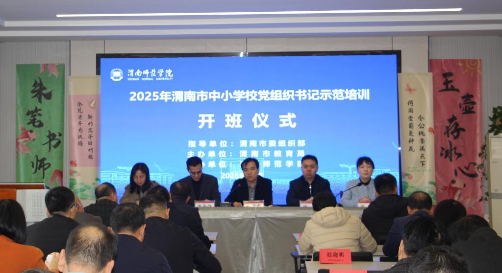 开班仪式上,渭南市教育局副局长鲁建春出席并讲话,继续教育学院直属党支部书记张晶代表学校致欢迎辞,渭南市委组织部组织二科科长梁伟、渭南市教育局基础教育科科长康军战出席开班仪式。仪式由继续教育学院副院长宋丽萍主持。