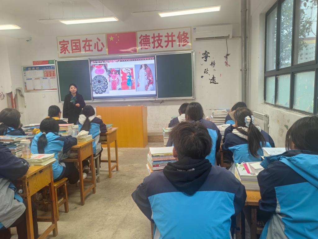 课堂中,张华老师以“剪纸艺术”为主题,从剪纸的历史发展、种类与技法、地域风格差异以及剪纸技法传承与创新应用四个方面展开,用生动的案例展示了剪纸从实用装饰到艺术创作的演变。课堂上,张老师通过视频与图片展示的方式给学生详细讲解剪纸的纹样选择和运剪技巧,从简单的对称纹样到富有乡村特色的花鸟、果蔬图案,在讲到剪纸的创新设计环节时,同学看到在舞台设计上、服饰首饰上、产品包装盒上都有剪纸的设计元素,学生们兴趣盎然,准备课后也实践起来,在裁剪与创作中体会传统民间艺术的独特韵味。