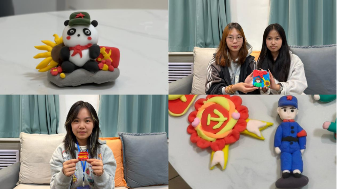 创作现场暖意融融、创意涌动。大家以小组为单位,分工协作、各展所长。有的小组以“长征精神”为主题,用粘土细致勾勒红军爬雪山、过草地的坚毅身影;有的聚焦“时代新貌”,通过塑造高铁、航天火箭等元素展现国家发展成就;还有的以“青春向党”为核心,用鲜艳的色彩与灵动的造型诠释青年一代的理想与担当。学生党员王佳怡主动发挥先锋模范作用,与大家分享红色故事、交流创作思路,在手把手的指导中传递温暖与力量。