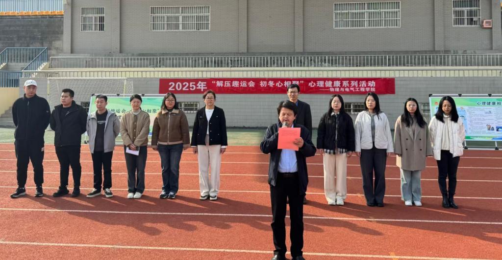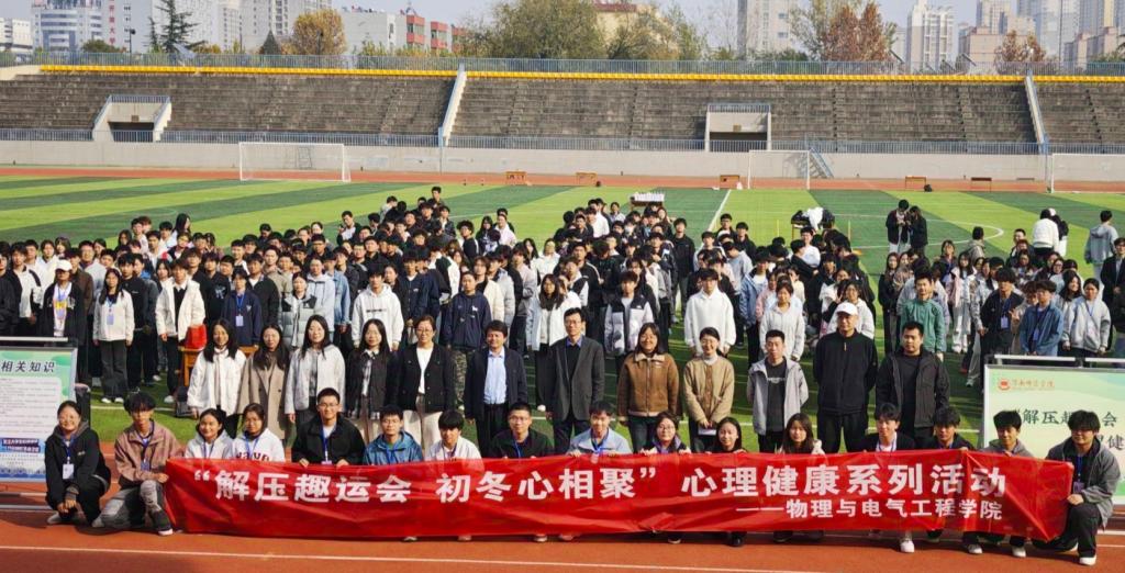 11月12日,物理与电气工程学院举办“解压趣运会 初冬心相聚”心理健康教育系列活动。学院党总支书记袁卫、院长秦玉伟、党总支副书记权轻舟、全体辅导员及350余名同学共赴现场,以趣味运动为载体破解学业科研压力,以协作交流为纽带凝聚成长力量,为构建全链条学生关怀体系注入鲜活动能。