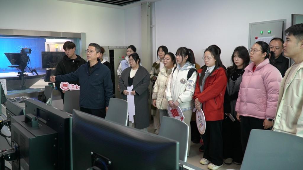 11月13日下午,bat365官网党委宣传部组织全媒体中心学生记者代表,在指导教师于占豪的带领下,赴渭南广播电视台开展实践研学活动,零距离、沉浸式学习新闻采编全流程。