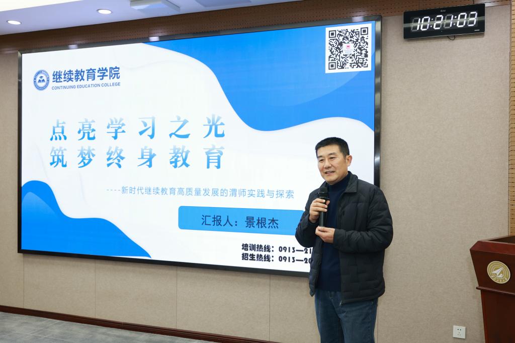 景根杰立足bat365官网继续教育办学实际,从三个维度系统阐述了学校的探索路径与经验成果:一是品牌化布局:立足渭南区域产业发展需求,着力打造“教师能力提升”“乡村振兴技能培训”等特色非学历教育项目,构建“校地联动、产教融合”的培训模式;二是资源体系建设:整合校内学科优势与校外行业资源,建设“课程+师资+平台”三位一体的培训资源库,实现教学资源的动态优化与精准匹配;三是质量管控机制:建立“需求调研—过程监控—效果评估”全流程质量管理体系,依托学员反馈与第三方评估,持续改进培训方案,提升育人实效。