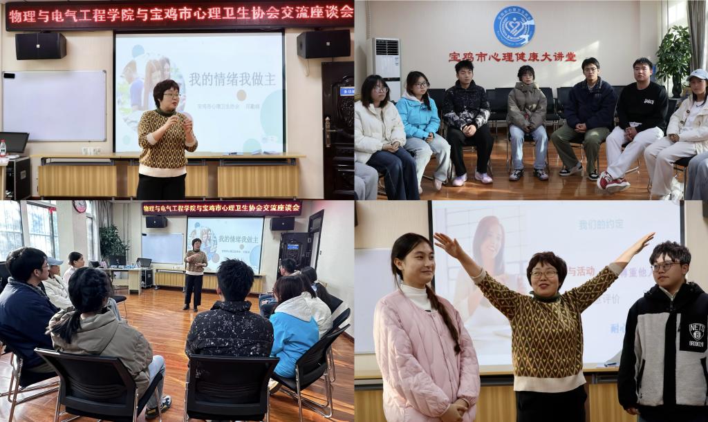 11月21日,物理与电气工程学院党总支书记袁卫、副院长郭宝会带队,组织师生代表赴宝鸡市心理卫生协会开展参观学习活动。活动以沉浸式体验+深度座谈+互动团辅形式,打造全方位心理健康教育实践课堂。