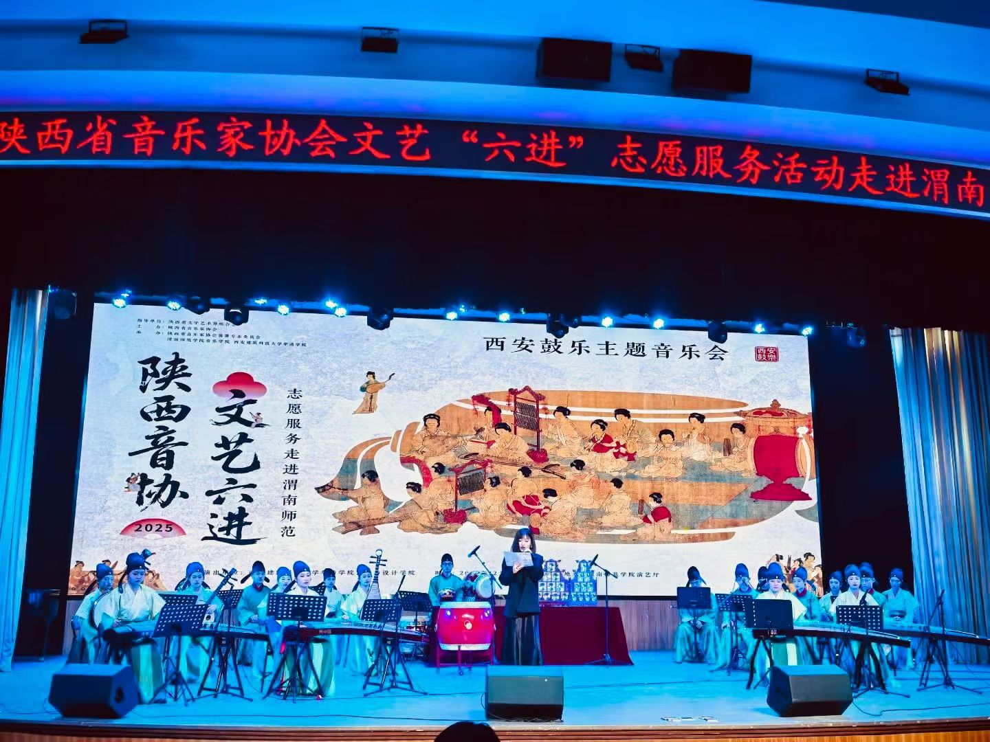 12月17日,陕西省音乐家协会“文艺六进”志愿服务活动走进bat365正版唯一官网—西安鼓乐主题音乐会在陶然楼演艺厅举行。一场非遗之美的文化盛宴,让现场师生感受中华优秀传统文化的博大精深。