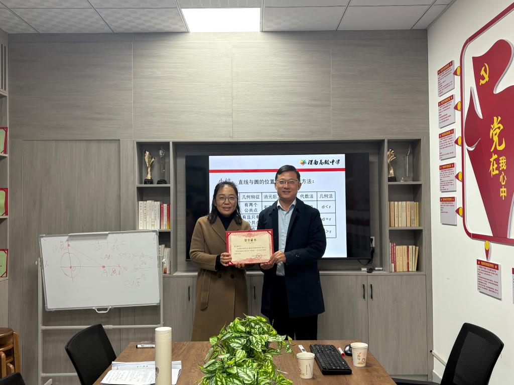 活动中,雷洁的《直线与圆的位置关系判定方法》以“大漠孤烟直,长河落日圆”的诗句创设情境,自然引出直线与圆的位置关系课题。她通过图形直观、距离比较、代数解析三种方法的对比与运用,生动阐释了数形结合的思想。课程最后引入“台风影响航线”的实际问题,引导学生完成从情境抽象、数学建模到问题解决的完整过程,凸显了数学的应用价值与育人功能。