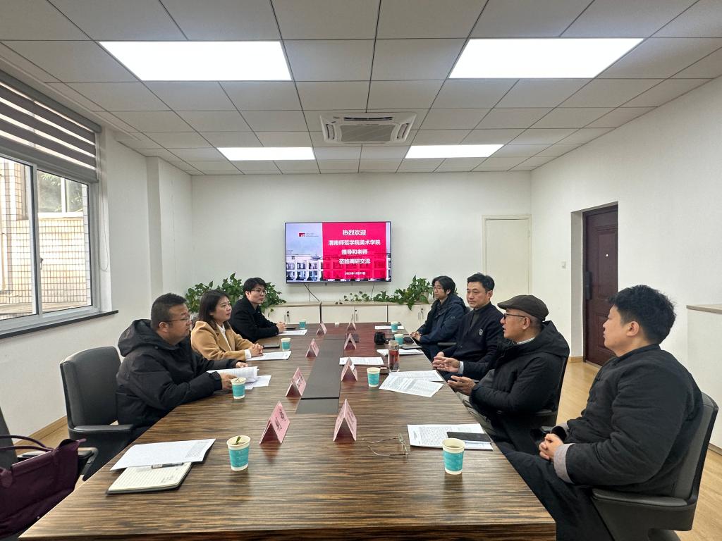 12月25日下午,调研团队下午来到华东师范大学美术学院,副院长郑文介绍了学院在学科发展、专业布局及教学改革方面的整体情况,重点分享了本科美术学专业及研究生书法篆刻方向在人才培养体系构建、课程内容创新及实践教学平台建设等方面的经验与成效。随后,双方与会人员围绕美术学及书法人才培养模式的构建与实施、专业课程体系建设与教学方法创新、实践教学与校企合作机制、毕业设计指导与成果转化等内容进行了深入交流与探讨。座谈会后,院长助理马俊营带领大家参观了美术学院漆艺术与综合材料实验室、人工智能+美育实验室、陶瓷艺术研究实验室等教学实验空间,并就传统艺术传承与前沿艺术科技融合话题等进行了现场交流。华师大美院在实验室建设和学科建设的优秀经验给调研团队留下了深刻的印象。
