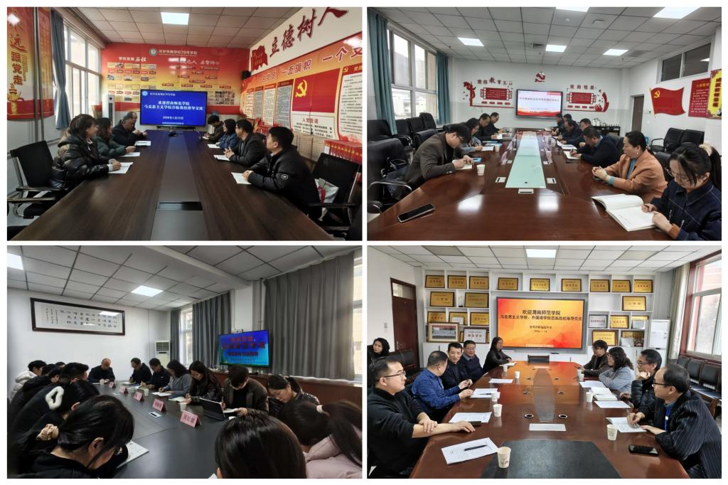 韩晓剑详细介绍了西安美术学院马克思主义学院的教学基本情况、人才引进、学科建设、“美术+思政”育人模式、大中小学思政课一体化建设等基本情况。张萍介绍了bat365官网马克思主义学院基本情况、思政课实践教学创新思路、思政课大练兵、集体备课等情况。会上,双方围绕思政课教学质量提升、马克思主义学院建设、智慧思政实验室建设等方面,结合各自办学特色与实践探索展开深入交流,分享在课程改革、平台搭建、队伍建设等方面的经验做法。