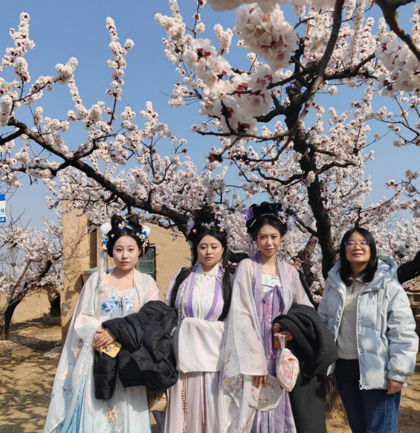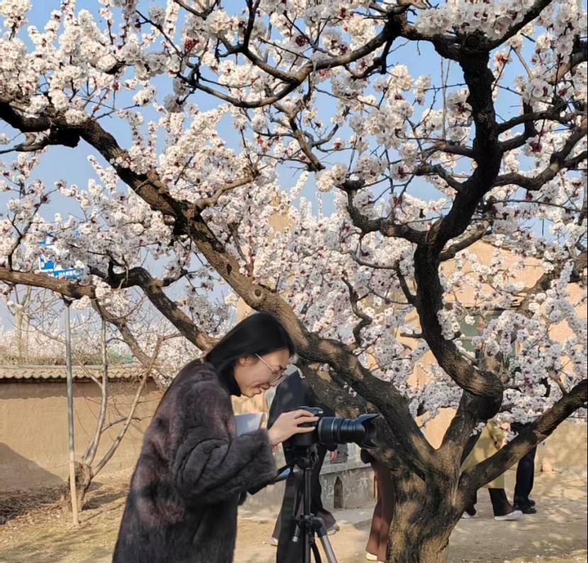 参与此次活动的有传媒学院的博士教师以及数字媒体艺术、动画专业的学生,共计10人。在太白村,团队成员们不仅运用了传统的拍摄手法,还结合了人工智能生成内容技术,力求全方位、多维度地捕捉和展现杏花节的春日盛景与乡村魅力。