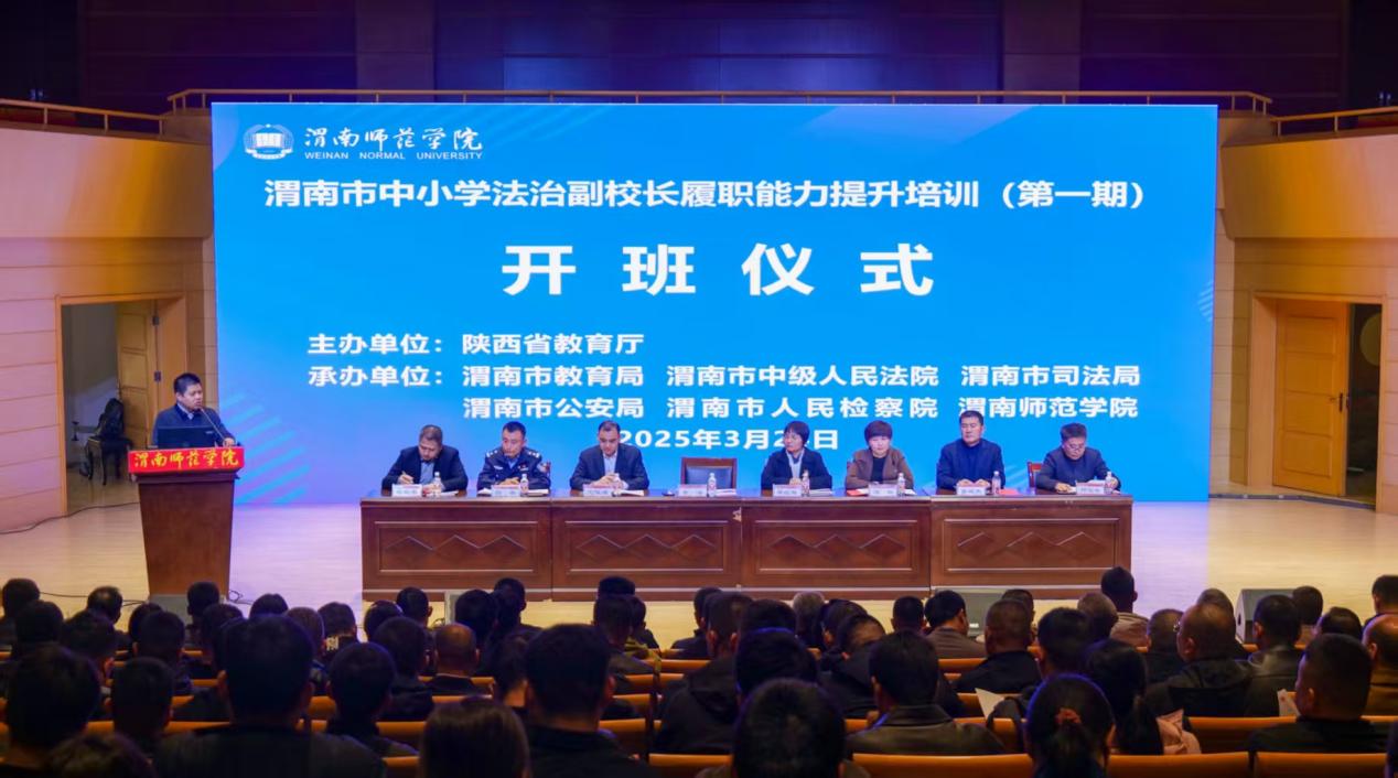 开班仪式上,渭南市教育局相关领导出席并讲话,终身教育学院院长景根杰代表学校致欢迎辞,首席专家郭宝会教授解读培训方案,市公安局治安管理支队副支队长白冬强调培训纪律。开班仪式由终身教育学院副院长苟鹏军主持。渭南市司法局副局长龚红梅、市中级人民法院刑事审判第一庭副庭长亢俊谦、市人民检察院未检办主任冯敏出席仪式。