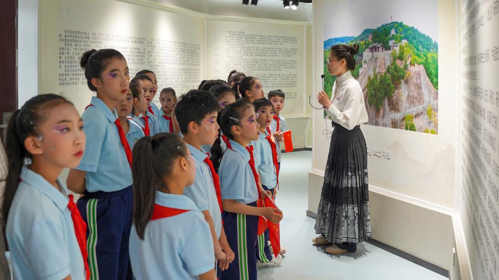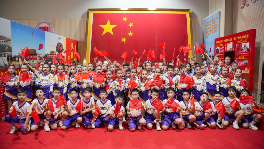 思政实践参观环节。在大学生志愿者的引导下,少先队员们首站来到天安门广场国旗展馆。面对这面曾在天安门广场高高飘扬的五星红旗,孩子们认真聆听国旗背后的感人故事。讲解员生动地讲述,让大家深刻感悟到国旗的庄严神圣与自强不息的民族精神,爱国的种子悄然在心田生根发芽。