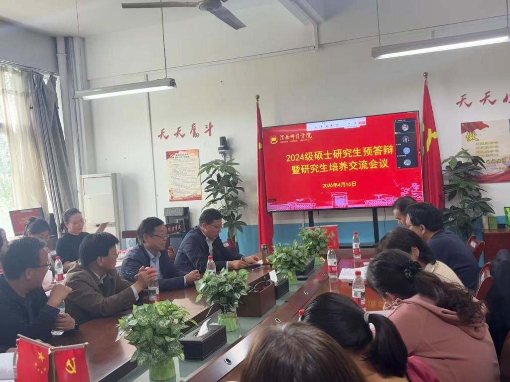 4月16日,数学与统计学院举办2024级硕士研究生预答辩暨研究生培养交流活动。会议特邀宝鸡文理学院刘淳安教授指导,学院硕士研究生导师、相关教师30余人及2024级、2025级硕士研究生参会(25级线上参会)。会议由院长陈斌主持。