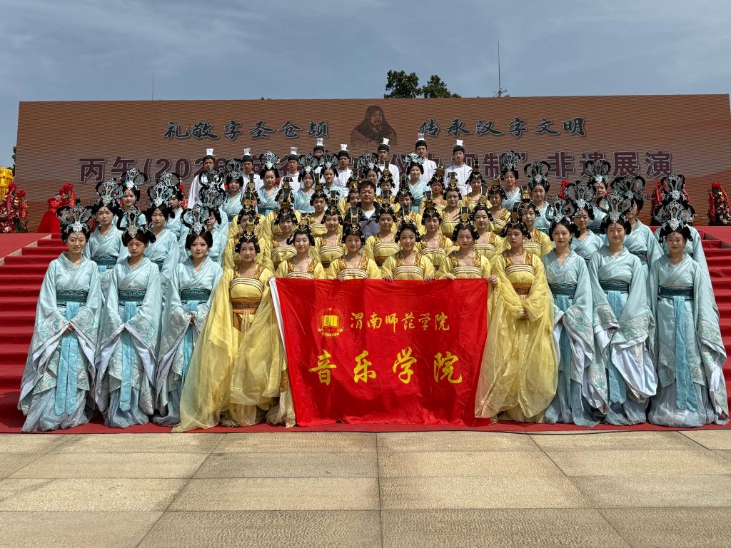 本次祭祀以“礼敬字圣仓颉,传承汉字文明”为主题,完整呈现“四仪九规制”省级非遗展演。作为受邀高校艺术团队,音乐学院高度重视此次任务,精心选拔59名舞蹈专业学生组成演出团队,由王朝阳老师担任编创与指导负责人。排练期间,师生们克服时间紧、任务重的挑战,利用课余与周末时间刻苦排练,从动作精准度、队形整齐度到情感表达,反复打磨数十次,力求完美还原古祭乐舞的庄重气韵。