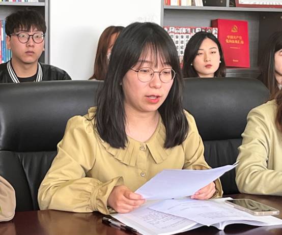 随后各学院党支部分别从各自支部党员基本情况、党员学习教育、组织建设、党员发展和培养、存在的问题等方面汇报交流。物理与电气工程学院第三党支部书记陈晨从入党积极分子、发展对象、预备党员、正式党员等方面重点介绍了支部党员发展方面的工作,对各支部的党员培养发展模式起到了重要借鉴作用;外国语学院学生第一、第二党支部书记伍萌和李萍详细介绍了支部活动开展方面工作,为各支部的今后的主题党日活动开展提供了新思路和新方法。