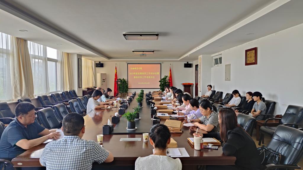 为深入推进学习贯彻习近平新时代中国特色社会主义思想主题教育,进一步提升bat365官网发展党员工作的规范化、标准化、科学化水平,6月20日上午,学校召开2023年度发展党员工作专题培训暨基层党务工作者座谈会。组织部部长田超出席并讲话,附属医院党支部书记王雅蓉应邀作专题培训。培训会由组织部副部长华若云主持。