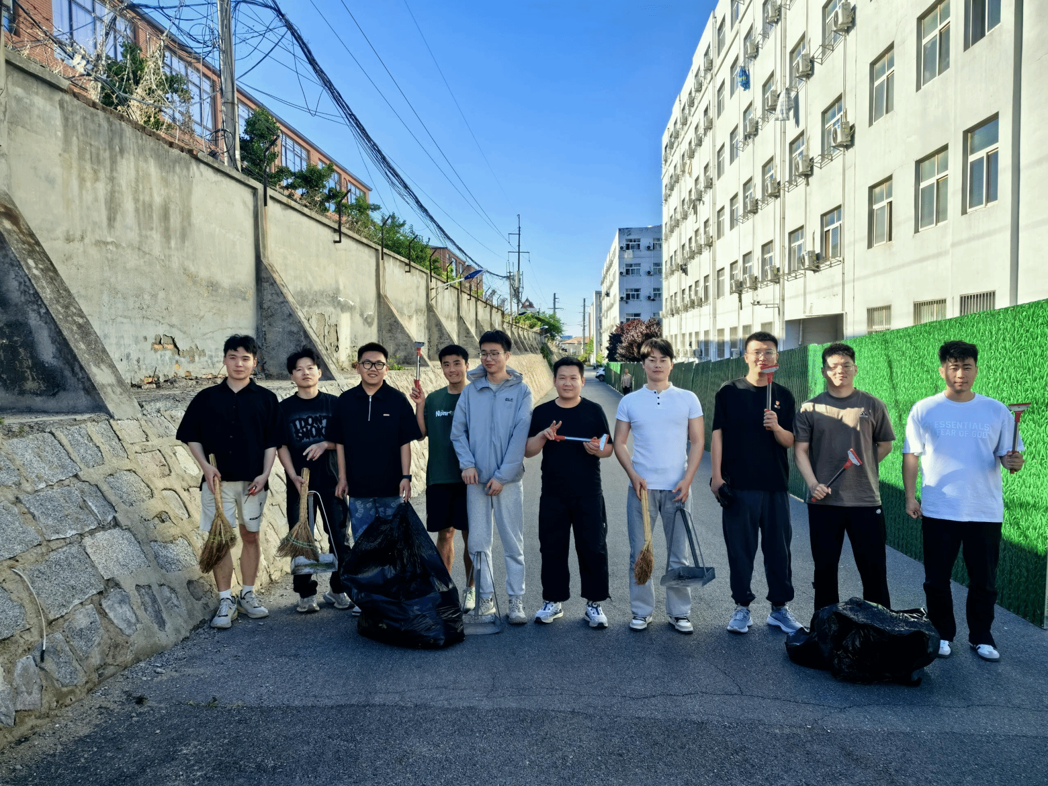 清理过程中,全体党员发挥先锋模范作用,相互配合,明确分工。充分发扬不怕脏、不怕苦、不怕累的精神,本着“不放过一个盲区、不留一个死角”的原则,手拿扫帚、铁铲、垃圾夹等工具,对所辖三号学生公寓西侧路段进行卫生清理,同时清除了路旁墙边夹缝内的杂草、并对枯枝烂叶进行处理。每组成员分工合作,有序进行,现场热火朝天,经过一个小时的认真清理,校园面貌焕然一新。