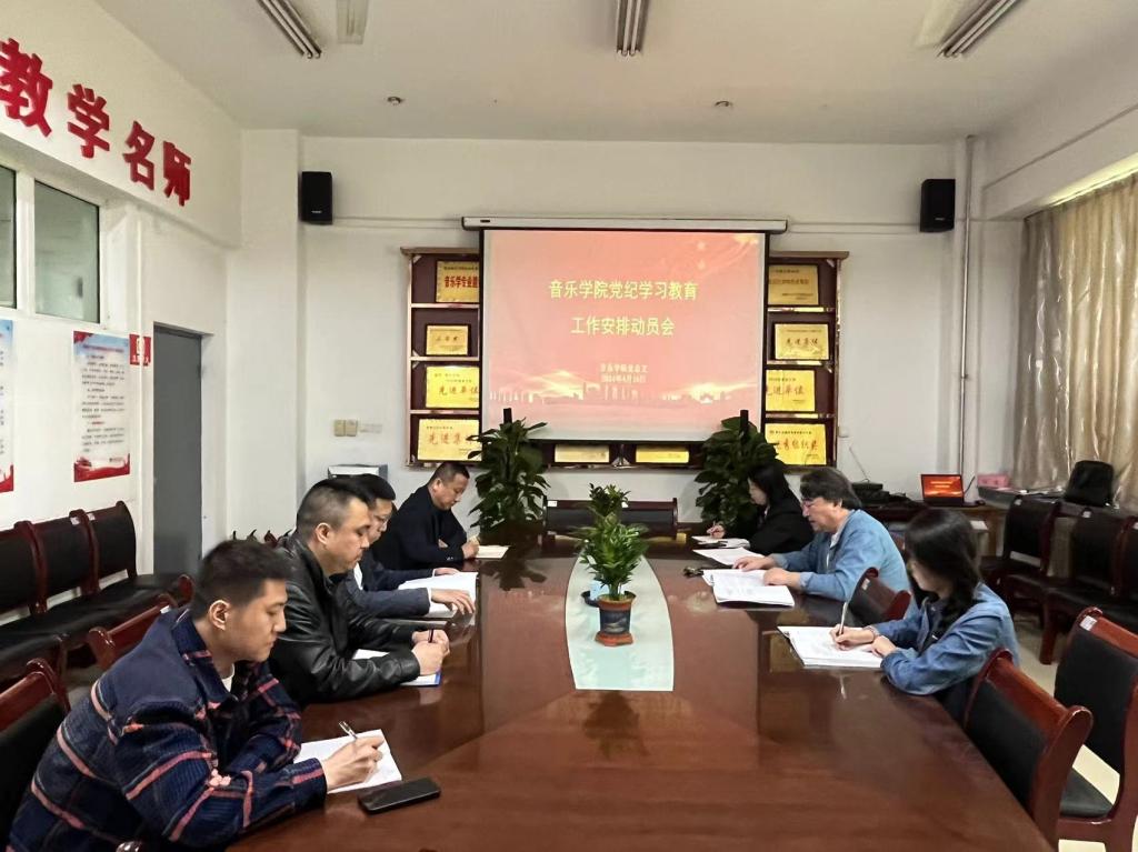4月15日,音乐学院党总支组织全体处科级干部、支部书记召开党纪学习教育工作安排会,会议由党总支书记白锐主持。