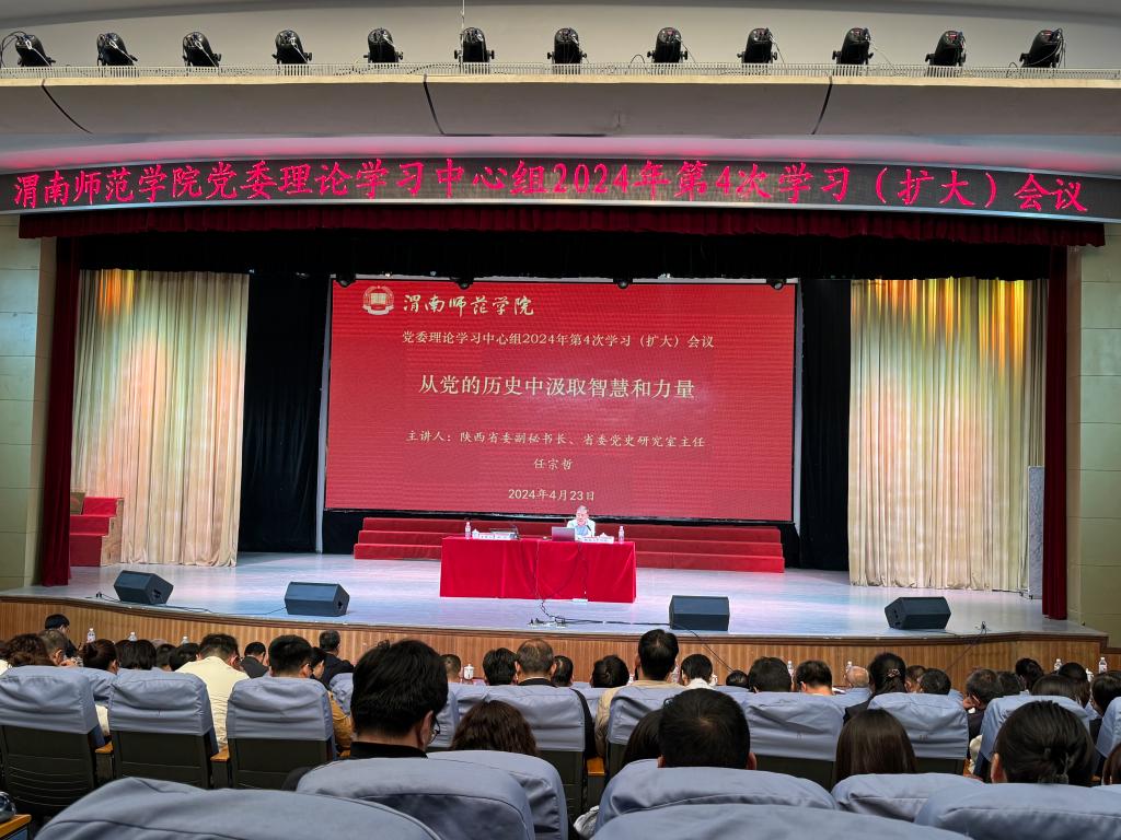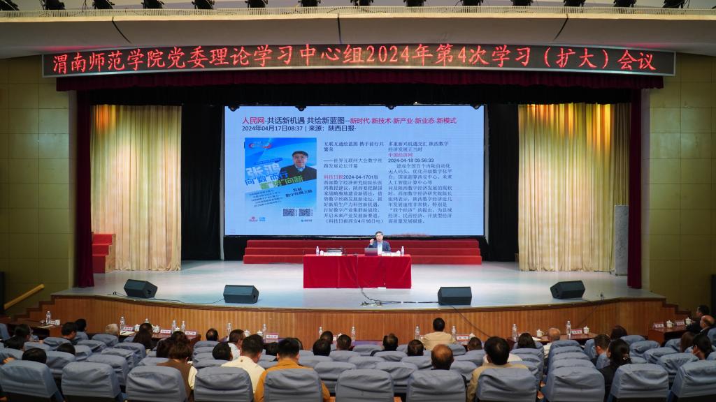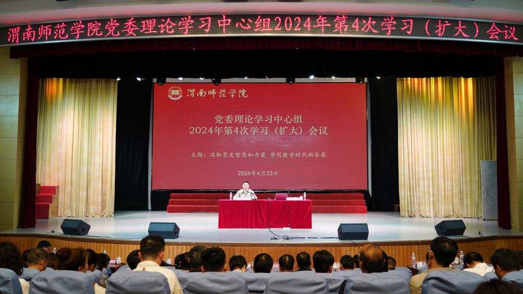 4月23日下午,学校召开党委理论学习中心组2024年第4次学习(扩大)会议,这是全校党纪学习教育全面部署以来的第一次中心组学习,聚焦深入学习贯彻《党史学习教育工作条例》,持续巩固拓展主题教育成果,聚焦深入学习领会习近平经济思想,习近平总书记关于推进中国式现代化、关于推动高质量发展的重要论述,围绕“汲取党史智慧和力量 书写数字时代新答卷”主题,通过领学、现场专题辅导报告等形式进行集中学习。特邀陕西省委副秘书长、省委党史研究室主任任宗哲,陕西省人大常委会财政经济工作委员会副主任杨三省,西部数字经济研究院院长张鸿教授等专家学者作专题辅导报告。党委书记卓宇主持学习会议。