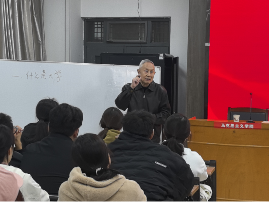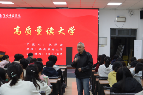 汉泽西教授有着丰富的履历,从考入西安交通大学求学到工作后在多个单位和国内外高校任职、访学,退休后仍活跃于教育领域。讲座中,汉教授围绕如何高质量读大学展开分享。他结合本人学习、工作和生活经历,从懂政治、会学习、爱生活、培养能力四个方面重点阐释当代青年学子成长成才的途径和方法。