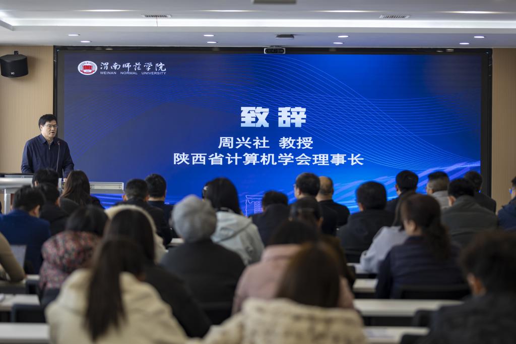 论坛邀请了西北工业大学、西安电子科技大学、西北大学、华为公司等高校的专家学者和技术人员做主题报告,以及渭南市电化教育馆、瑞泉中学、渭南小学等单位的负责人,共同围绕人工智能教育、师生数字素养培养、人工智能赋能教育教学改革等议题展开讨论。论坛活动由学校科学研究处、学科建设办公室、教务处相关负责人主持,学校副校长卢爱刚教授、陕西省计算机学会理事长周兴社教授参加开幕式并致辞,校内外教师共计300余人通过线上、线下方式参与论坛。