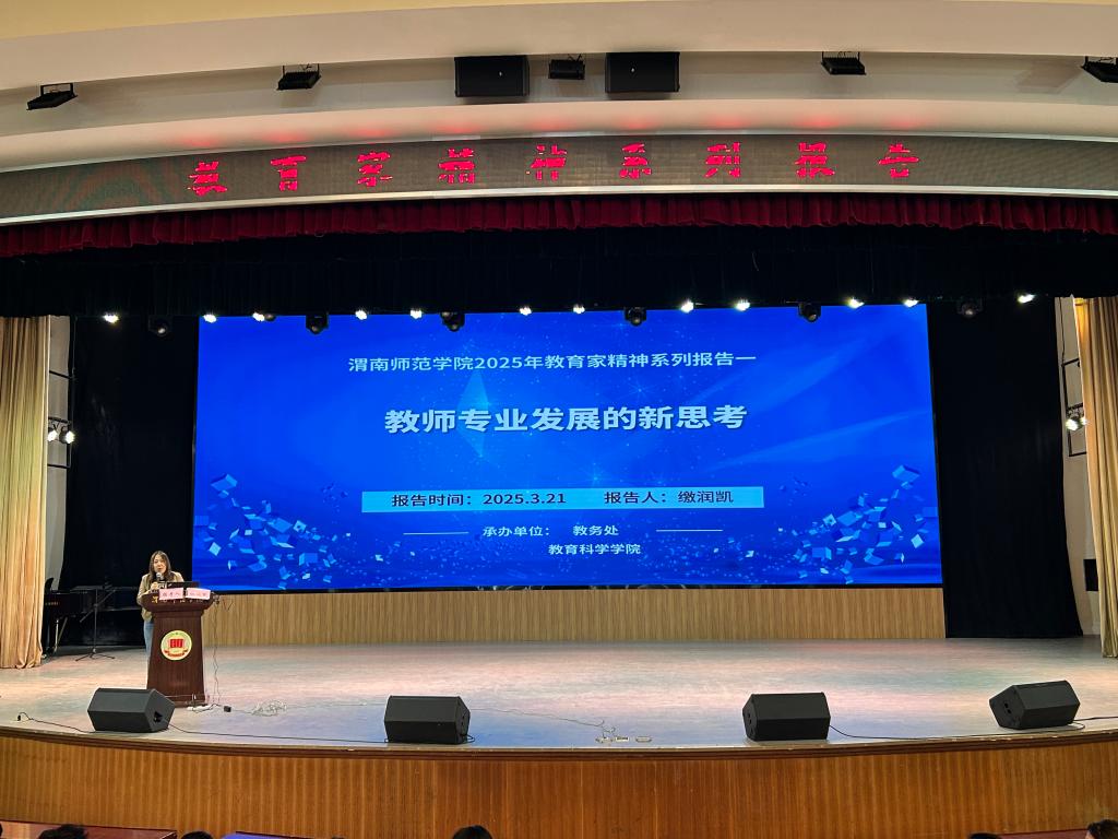 3月21日上午,教育科学学院特邀教育部幼儿园园长培训中心主任,东北师范大学博士生导师缴润凯教授在陶然楼演艺厅做题为“传统文化视角下教师专业发展的新思考”的专题报告,各二级学院教学副院长、无课教师和部分学生参与聆听,报告由教育科学学院院长李西彩主持。