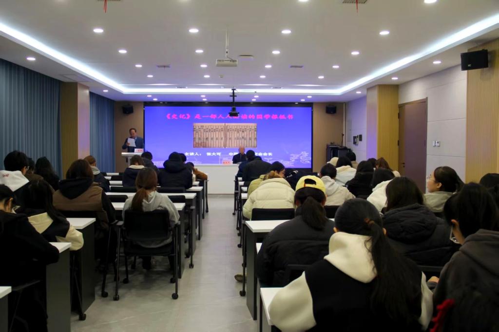 11月7日上午,中国史记研究会会长张大可先生应邀做客人文大讲堂,以“《史记》:人人必读的国学根柢书”为主题开讲。人文学院40余名师生到场参与,围绕《史记》的文献价值、文化内涵及当代意义展开交流,此次讲座由该院凌朝栋教授主持。