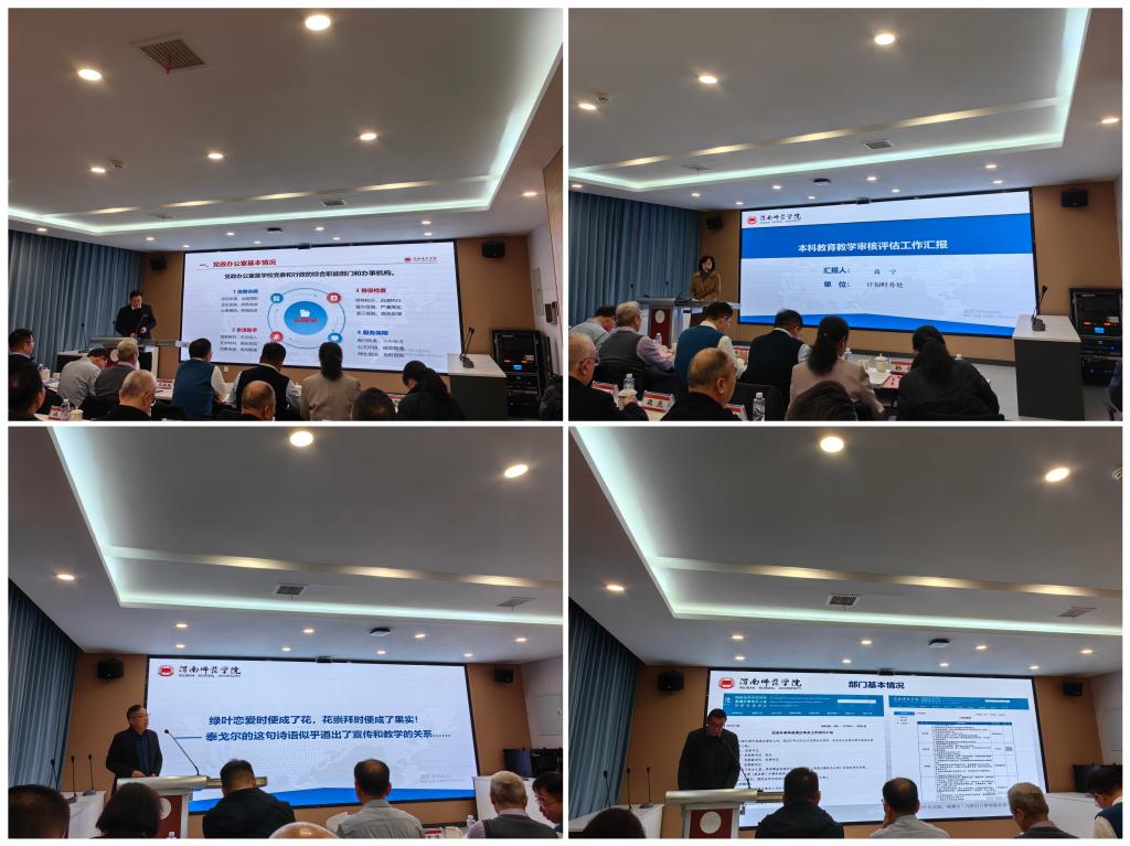 会上,15个二级学院院长就学院现状、育人举措及成效、学院特色优势、不足及努力方向的自评自建工作作了汇报,教务处、党政办公室、计划财务处、国有资产管理处、人事处、宣传部、学生工作部、发展规划处、团委、后勤服务中心、组织部、纪委综合室、纪检监察室、国际交流处负责人代表职能处室围绕服务教育教学工作的举措与成效、特色与亮点、存在的问题及规划作了汇报。