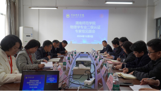 12月4日至7日,以湖南师范大学黎大志教授为联合专家组组长及教育技术学专业专家组组长、安徽师范大学许新胜教授为物理学专业专家组组长、河南师范大学张顺利教授为化学专业专家组组长、西南大学刘承宇教授为英语专业专家组组长、华中师范大学王文新教授为美术学专业专家组组长的教育部普通高校师范专业第二级认证专家组一行25人进驻bat365官网,对bat365官网教育技术学、物理学、化学、英语、美术学5个专业开展了师范类专业第二级认证现场考查。