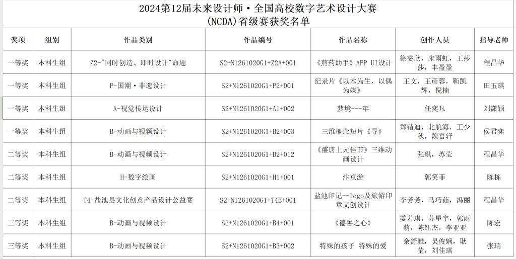 据悉,全国高校数字艺术设计大赛由工业和信息化部人才交流中心主办,面向高校在读大学生(含研究生、博士生)及教师。大赛秉承“设计为人民服务,培养未来设计师”的理念,坚持艺术与技术并重、学术与公益并重,引导大学生将专业知识服务于社会,提升大学生的设计创新与实践能力,拓展国际视野及团队协作精神,成为未来的主力设计师。(通讯员 陈栋 审核人 贺宏福)