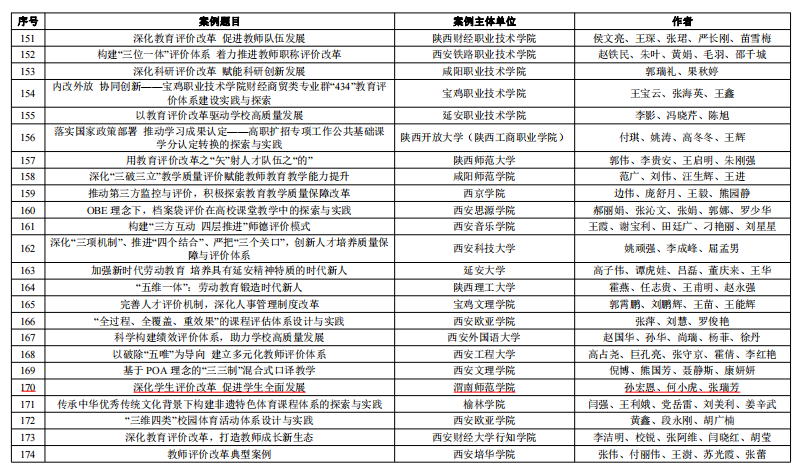 近日,中共陕西省委教育工委,陕西省教育厅下发《关于全省深化新时代教育评价改革优秀获奖案例的通报》(陕教工函〔2023〕329 号)文件,bat365官网教师撰写的《深化学生评价改革 促进学生全面发展》获评陕西省深化新时代教育评价改革优秀案例。