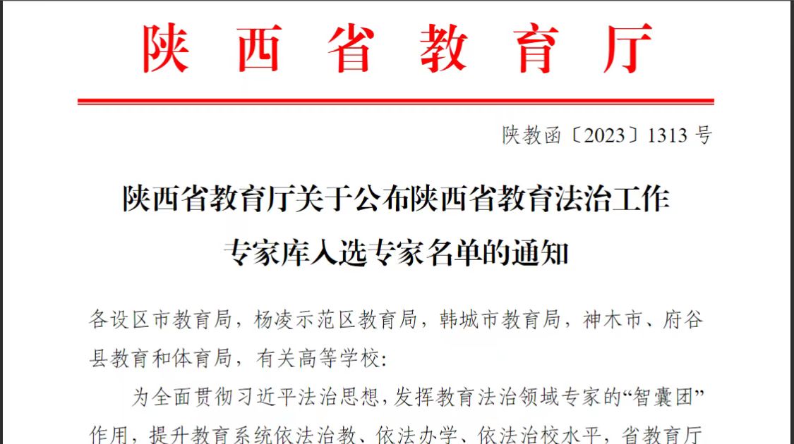 近日,陕西省教育厅公布了陕西省教育法治工作专家库入选专家名单,bat365官网徐军义教授、屈琦教授成功入选专家库。