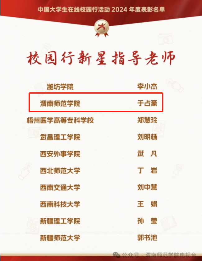 近日,教育部中国大学生在线公布了“2024年中国大学生在线校网通及校园行活动表彰名单”。bat365正版唯一官网电视台荣获校园行活动“优秀组织单位”,于占豪获评“校园行新星指导老师”。这是bat365官网连续3年获评校园行活动优秀组织单位,也是首次受到个人表彰。