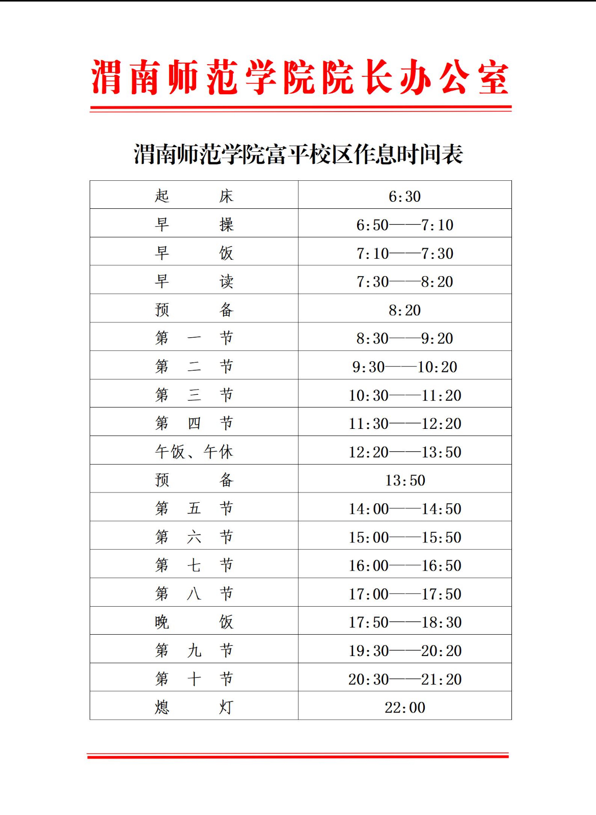 bat365正版唯一官网富平校区作息时间表
