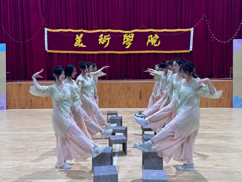 舞蹈《碇步桥》更是以独特魅力征服全场,舞者们身着飘逸的服饰,在舞台上时而舒展如蝶,时而腾跃似燕,通过刚柔并济的肢体语言,将美术学院学生在艺术道路上追逐梦想的坚定与执着展现得淋漓尽致。