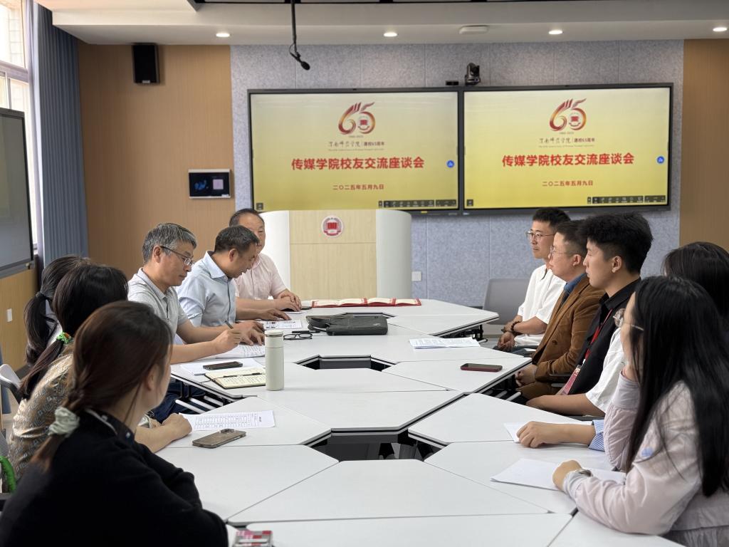 5月9日,传媒学院举办校友座谈会,学院特邀2010级动画专业毕业生、陕西周少平雕塑工程有限公司法人周少平,2015级广播电视编导专业毕业生、陕西向上攀登影业有限公司法人王耀天,以及2018级戏剧影视美术设计专业毕业生闫冲出席座谈会。此次座谈会旨在共叙师生情谊,共谋母校未来发展。学院党总支书记田康顺、院长林关成和教师代表参会,会议由副院长贺宏福主持。